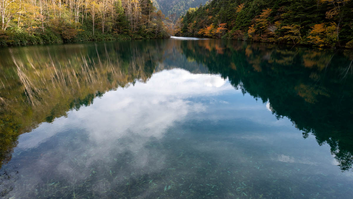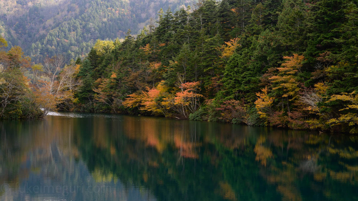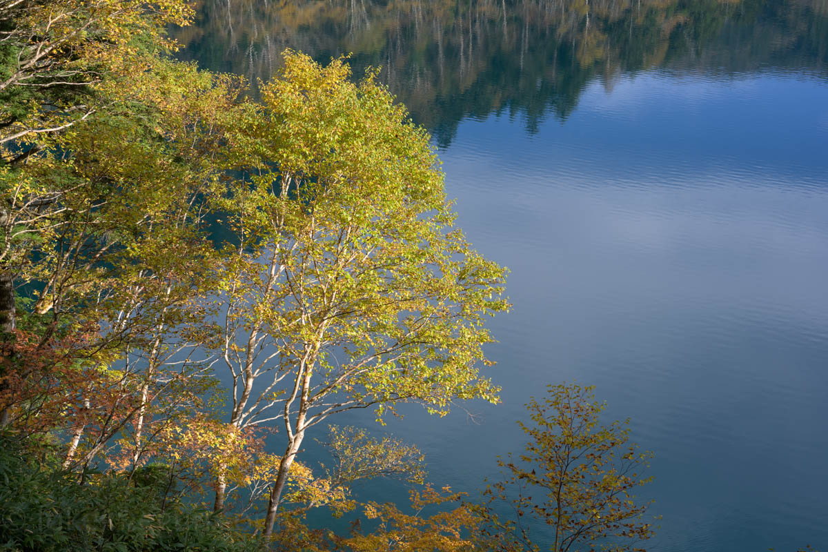 波立っていなければ、水鏡の紅葉を見ることができます。