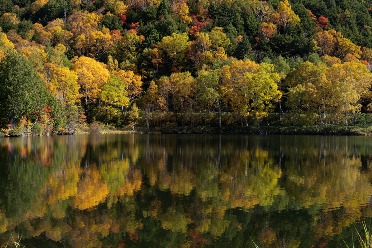 一沼 は、紅葉の赤色が目立ち、水鏡によく映ります。
