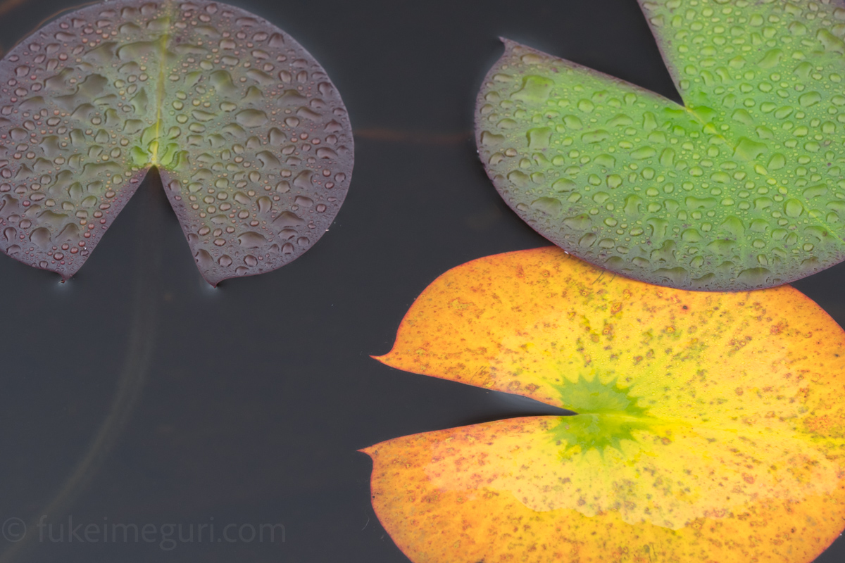 こちらは、一沼のヒツジグサの黄金色の葉。