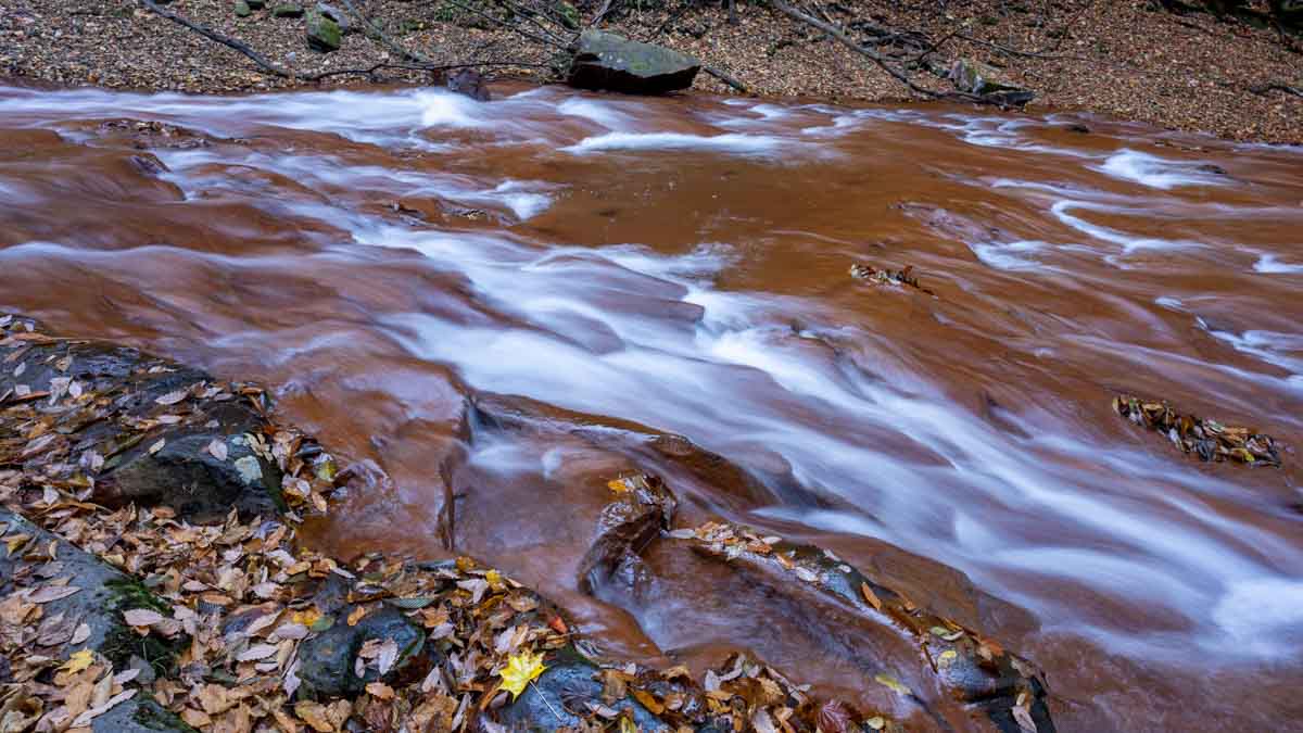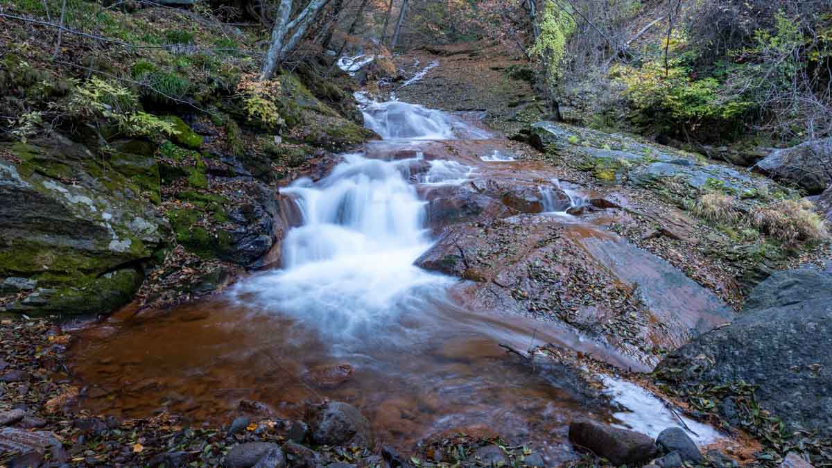 おしどり隠しの滝を渡る手前の岩に金属製の階段があります。
