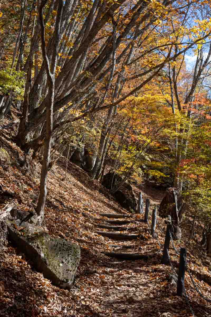 帰りに横谷観音に立ち寄る場合、分岐2から王滝展望台へ向かわずに横谷観音方面に進むと少しは楽です。